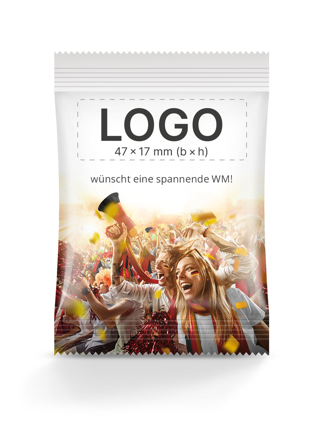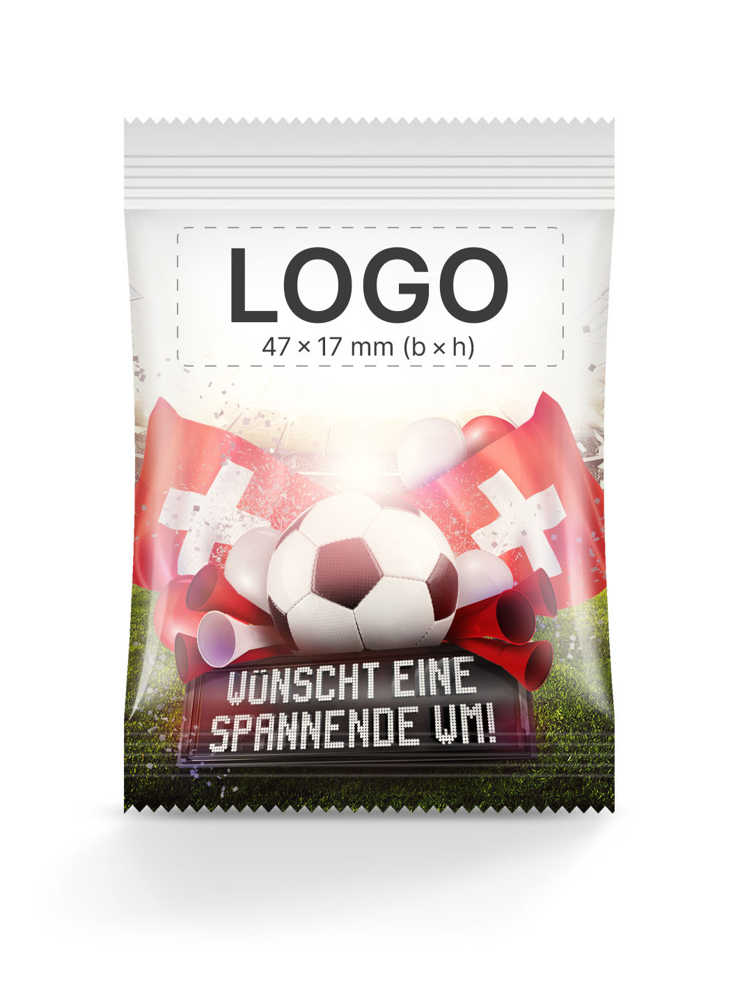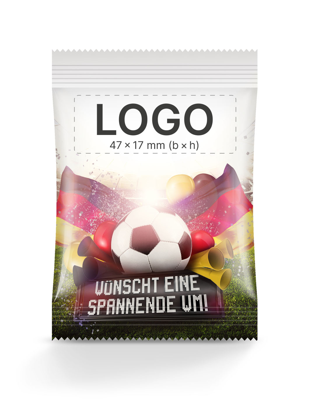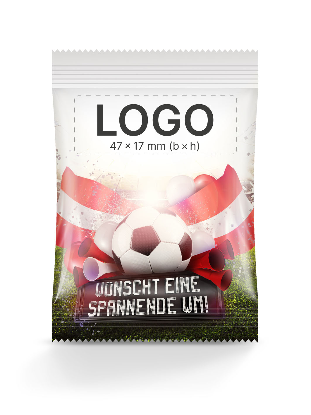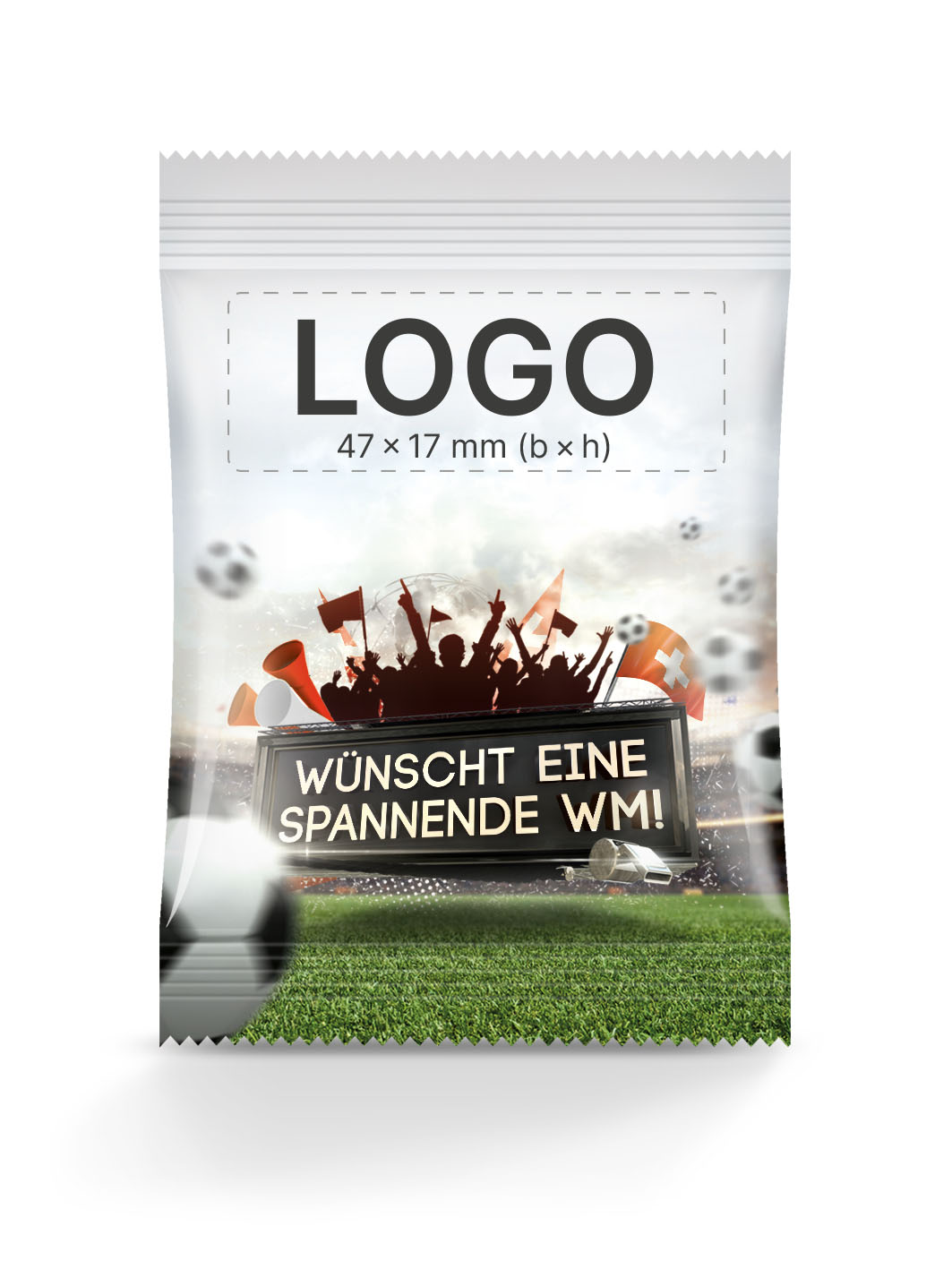 Nutzt die Gelegenheit, eure Marke mit der Faszination und dem Enthusiasmus rund um die WM 2026 zu verbinden, einem Event, das Millionen Menschen weltweit in seinen Bann zieht. Lasst euer Logo durch diese speziell gestalteten Tütchen-Motive in Erinnerung bleiben!